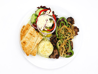 Pita Bread, Iceberg Lettuce, Spring Mix, Carrots, Tomatoes, Cucumber, Red Onions, Red & Green Peppers, Kalamata Olives and Pepperoncini.