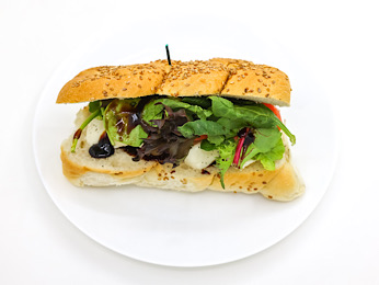 Sub Roll, Fresh Mozzarella, Pesto Sauce, Tomato, Balsamic Glaze, Spring Mix and Toasted.