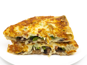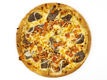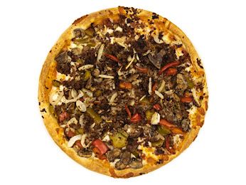 Pizza Cheese, Pizza Sauce, Steak, Grilled Onion, Grilled Pepper and Grilled Mushroom.