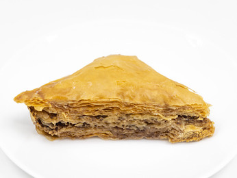 Greek Desert Baked With Kataifi Dough Creamy Custuard, Whipped Cream, Pistachios, & Cinnamon
