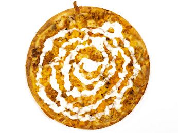 Pizza Cheese, Alfredo Sauce, Broccoli and Grilled Chicken.