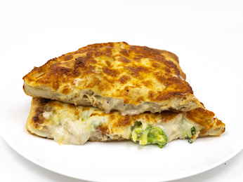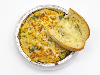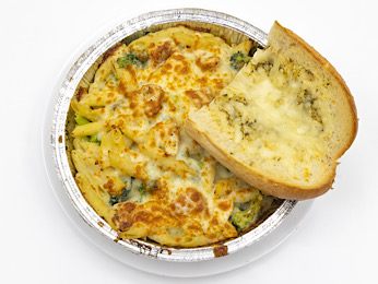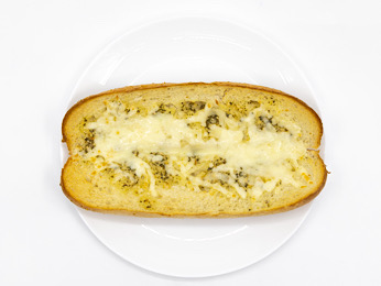 Garlic Bread W/Cheese, Alfredo Sauce, Melted Mozzarella, Broccoli and Grilled Chicken.