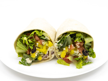 Pita Bread, Iceberg Lettuce, Spring Mix, Bacon, Carrots, Tomatoes, Cucumber, Red Onions, Kalamata Olives and Pepperoncini.