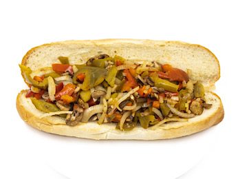Sub Roll, Teriyaki Sauce, Grilled Onions, Grilled Peppers and Grilled Mushrooms.