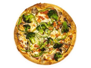 Pizza Cheese, Pizza Sauce, Onion, Green Pepper, Mushroom, Tomato and Broccoli.