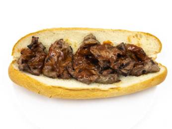 Sub Roll, Cooper Sharp Amerian Cheese, Grilled Onions, Grilled Peppers and Grilled Mushrooms.